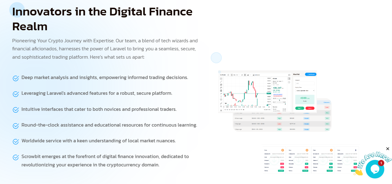 Pioneering Your Crypto Journey with Expertise. Our team, a blend of tech wizards and financial aficionados, harnesses the power of Laravel to bring you a seamless, secure, and sophisticated trading platform. Here's what sets us apart: